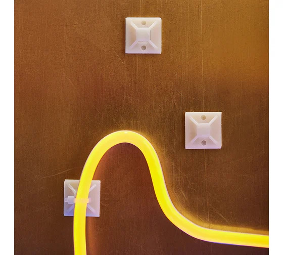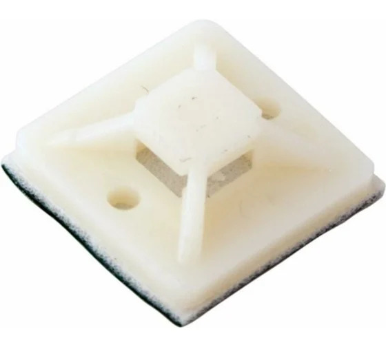 Самоклеящаяся площадка 20х20 мм используется для фиксации кабелей при выполнении электромонтажных работ. Площадка крепится к любой поверхности благодаря клеевому слою: необходимо приклеить площадку, выдержать несколько минут, пока происходит процесс адгезии, и далее производить необходимые работы. Выполнена из белого пластика и оснащена специальными креплениями для хомутов, которые стягивают кабели в пучок. Площадка незаменима для временной организации кабельной системы в ограниченном пространстве, для прокладки новогодних гирлянд и других декоративных изделий. Может также использоваться для крепления других легких предметов. Предназначена для крепления на пластик, стекло, металл. После демонтажа площадки на поверхности может остаться слой клея, который легко удаляется с помощью средства для удаления следов наклеек.