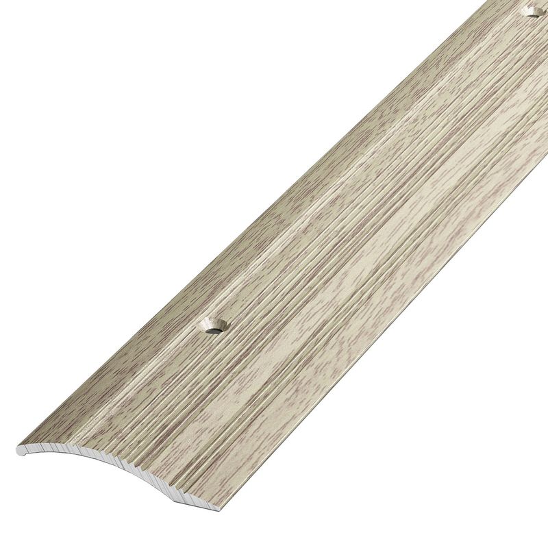 Алюминиевый порожек крепится в проем между двумя напольными покрытиями на саморезы (идут в комплекте)
