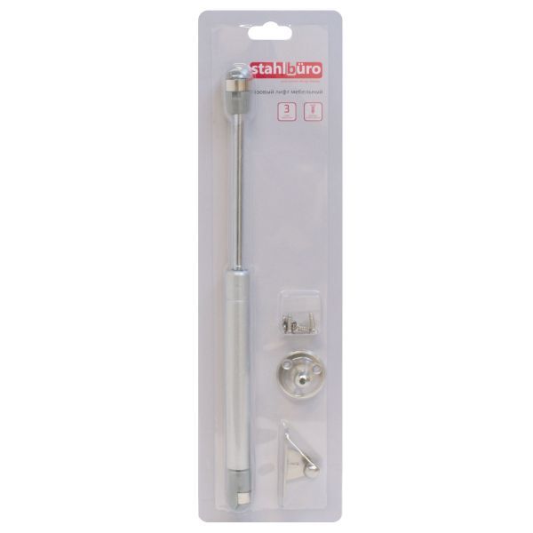 Газовый лифт для верхних фасадов корпусной мебели. Представлен в 3 вариантах номинального усилия: 60N, 80N и 100N. Модель может транспортироваться при температурном режиме от -20 до +30 градусов, но эксплуатация и установка возможны только при комнатной температуре. Газовый лифт поставляется в комплекте с двумя кронштейнами – для крепления к боковой стенке корпуса и к мебельному фасаду.