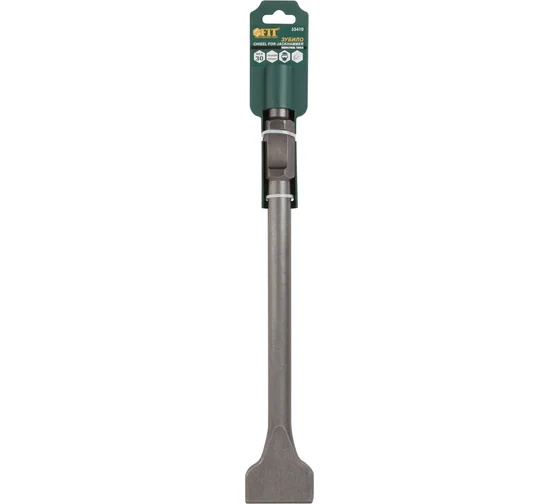 Зубило для молотка отбойного широкое НЕХ 30х75х410 мм (артикул 33410) от бренда FIT предназначено для штробления и разбивки бетона, камня и кирпича.